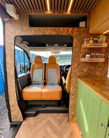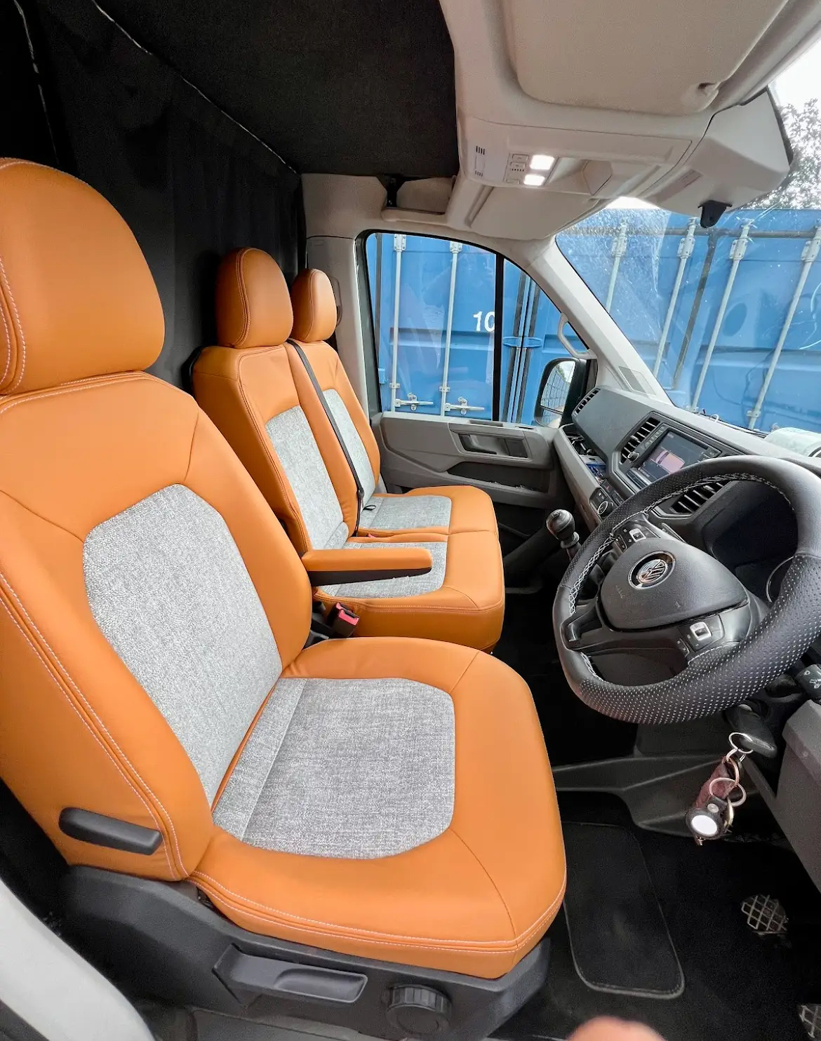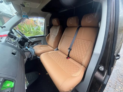 VW T6 seats reupholstered in tan vinyl