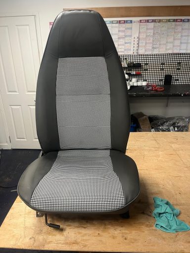Reupholstered in blue GTi and black vinyl, with the upgraded foam SAS3