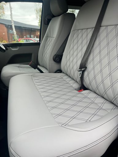 VW T5 seats retried in vinyl with diamond stitching