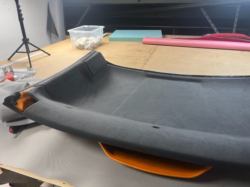 These seats came in after being in a vehicle fire, we reupholstered them in black nappa leather and black alcantara.