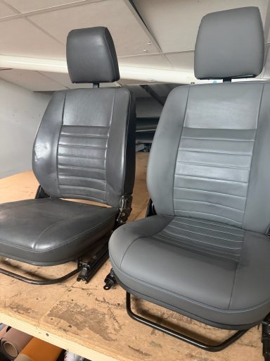 VW T6 seats reupholstered in Grey vinyl and aurora fabric.